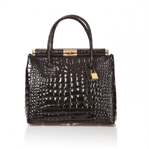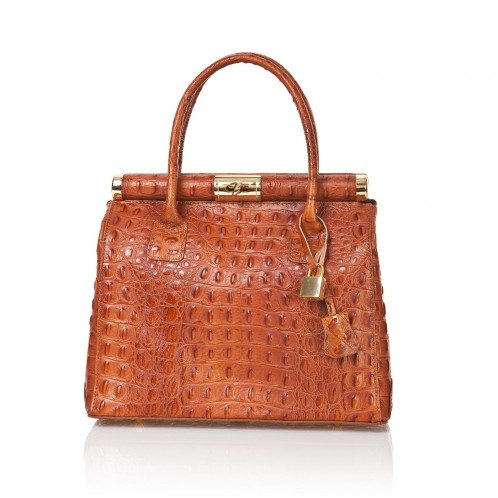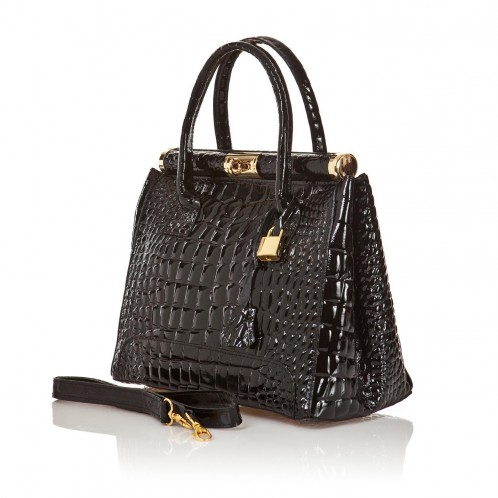 Genuine leather bag, crocodile print. The bag that cannot miss in every woman's wardrobe with its modern design and timeless. Details gold, padlock. shoulder strap.